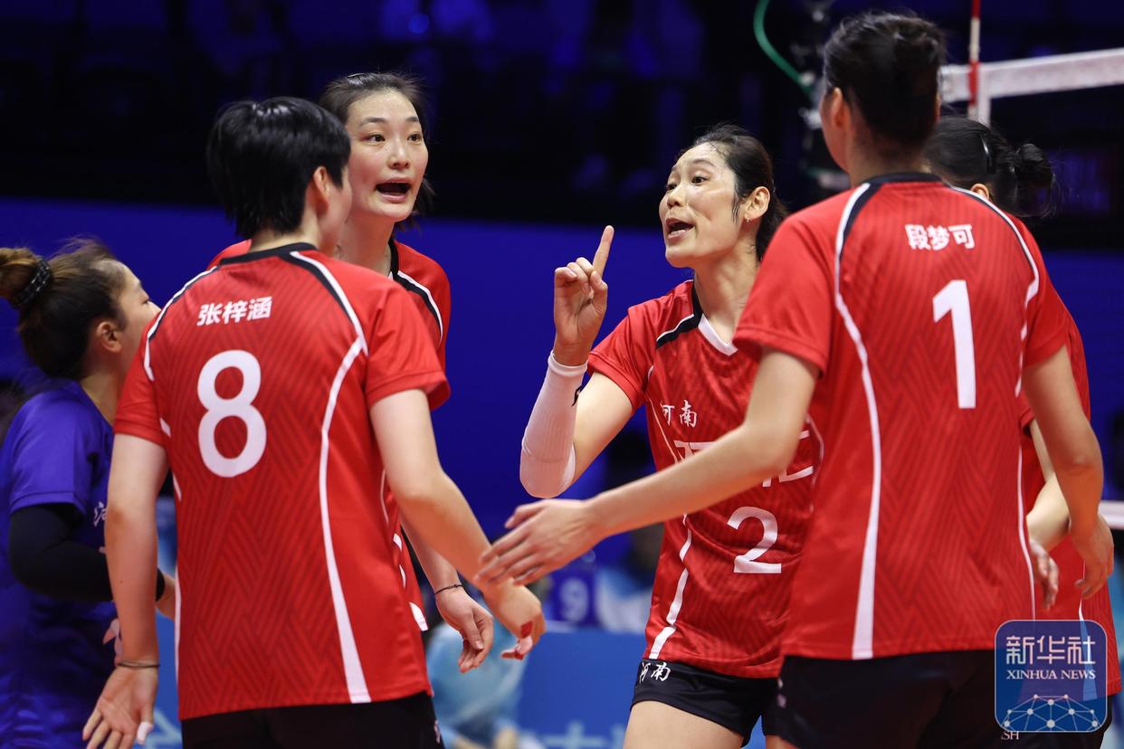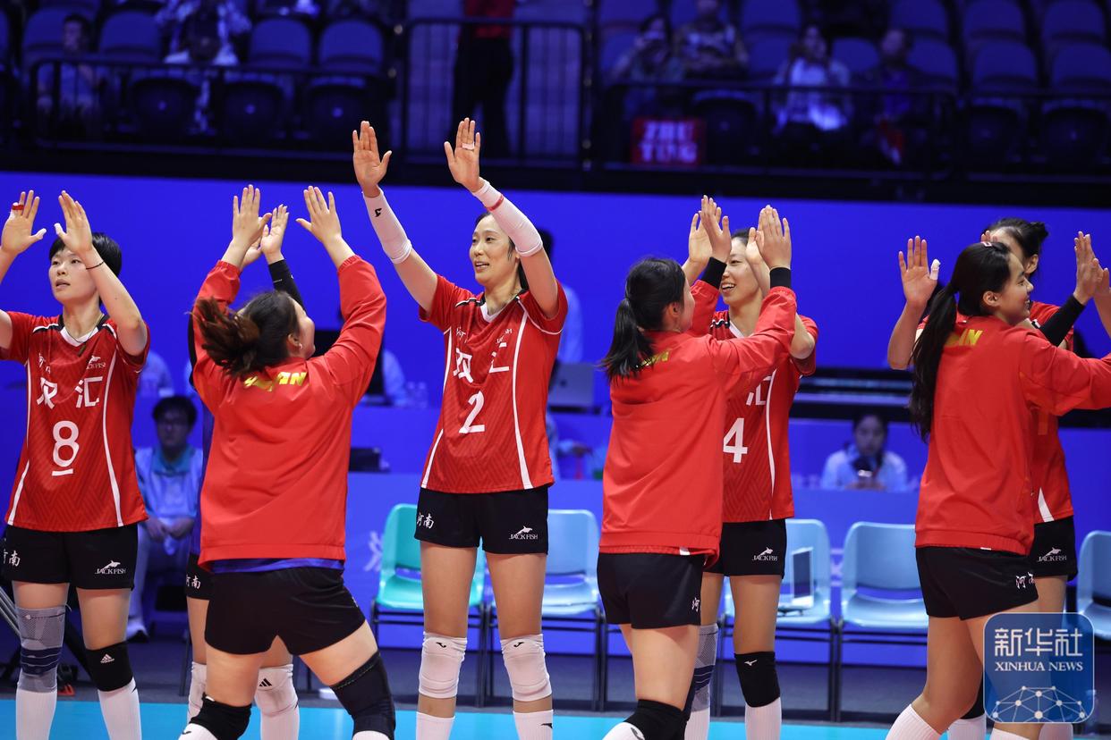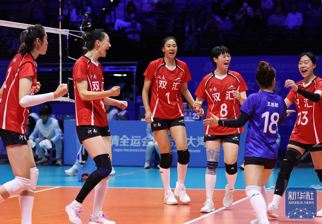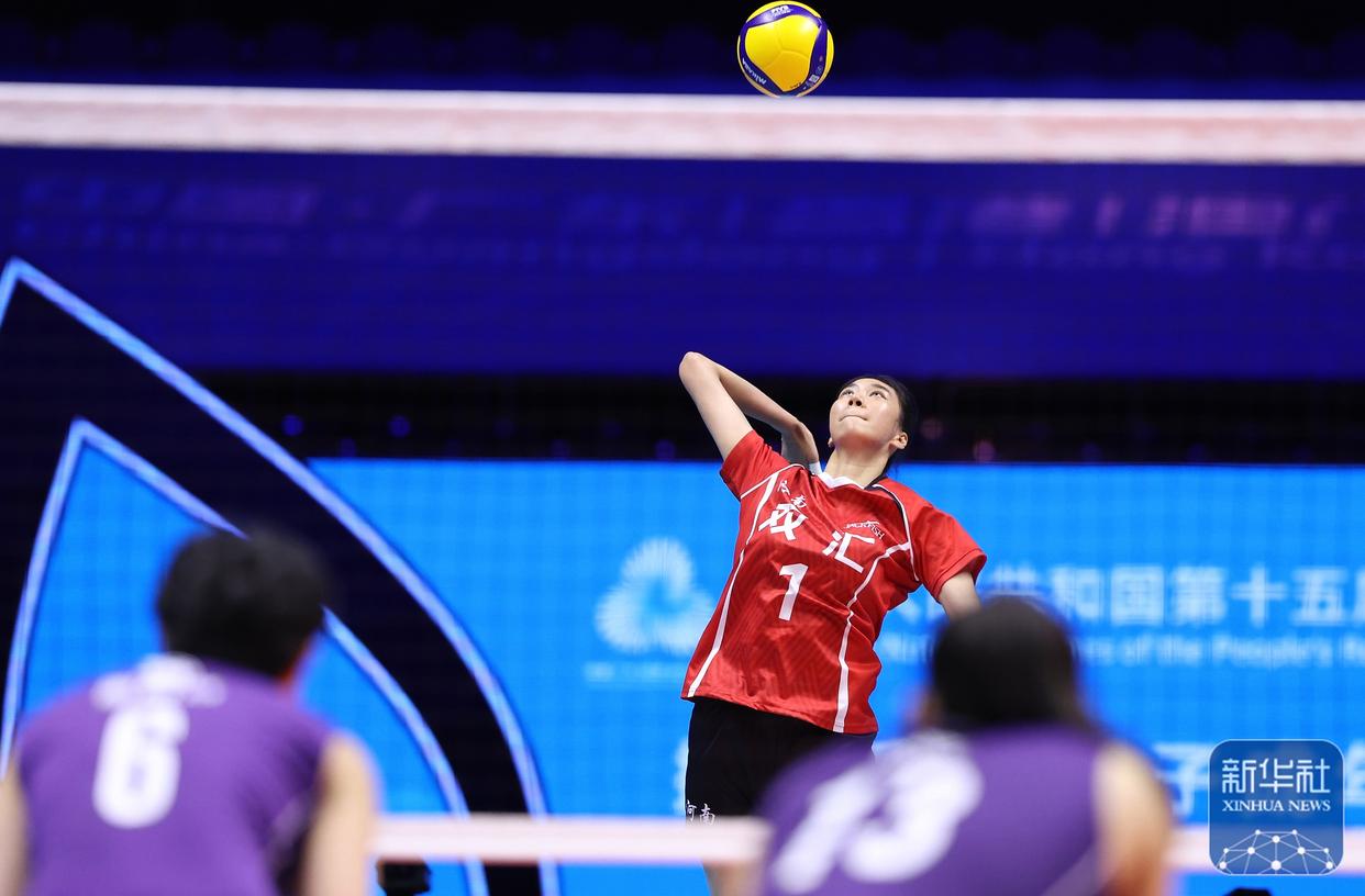 11月12日,在澳门举行的第十五届全国运动会女子排球成年组小组赛A组比赛中,朱婷领衔的河南女排直落三局3-0完胜北京女排,取得小组赛5连胜,三局比分为25-14、25-20和25-23。