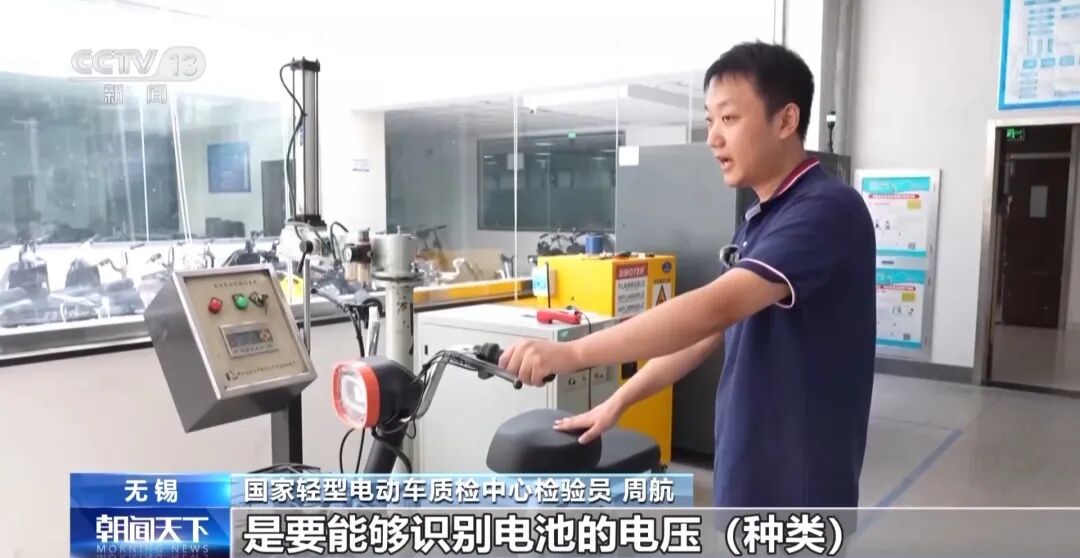 国家轻型电动车质检中心检验员周航说:新国标要求对于控制器来说,能够识别电池的电压(种类),这台车的标称电压是48V,防篡改中规定就是此辆车只能对标称48V的铅酸(电池)能够运行,使用户无法对电池电压进行篡改,增强了整车的安全性。