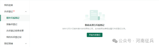 登录系统以后,点击右侧的“开始兵役登记 ”进行兵役登记啦!