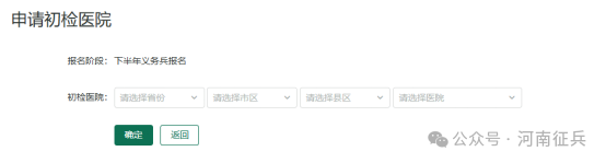 义务兵报名信息填写完毕并成功提交后,请在当地乡镇武装部或高校征兵工作站工作人员的指导下,点击我的进度里的“初检初核”按钮,选择初检医院进行初检,这是参军环节的第一步。