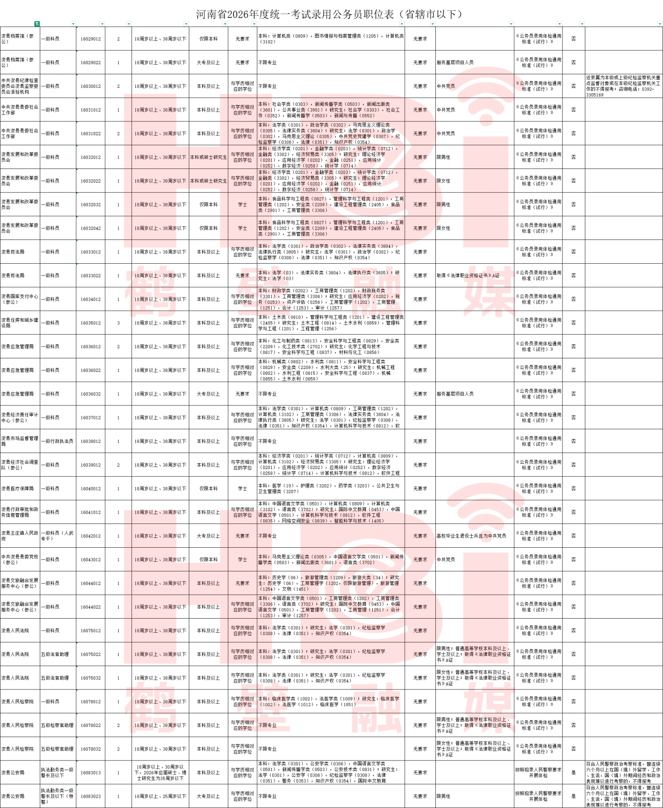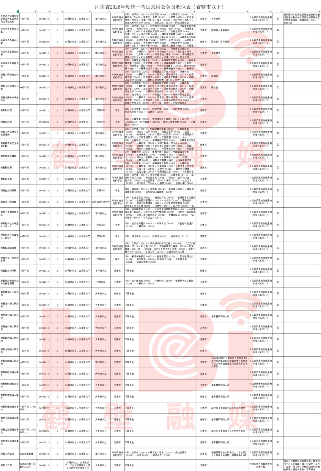 河南省2026年度统一考试录用公务员公告