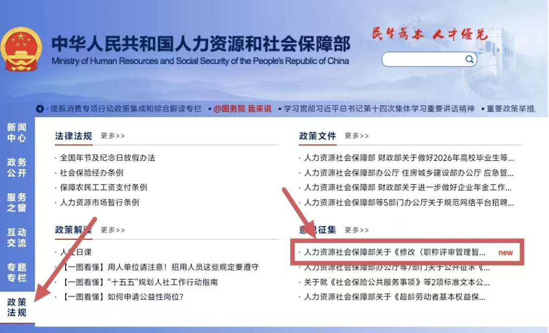 为深入贯彻落实党中央、国务院关于深化人才发展体制机制改革的决策部署,进一步深化职称制度改革,人力资源社会保障部研究起草了《人力资源社会保障部关于修改〈职称评审管理暂行规定〉的决定(征求意见稿)》,现向社会公开征求意见。公众可以于2026年4月20日前通过以下途径和方式提出意见: