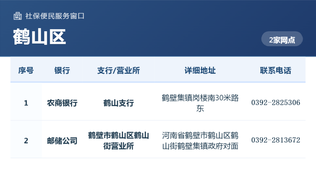 4.持续更新:后续新增网点将及时在“鹤壁人社”公众号及官网公布。