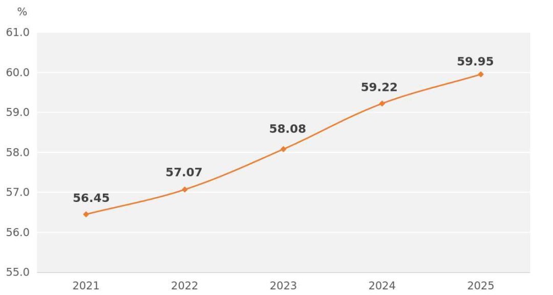 图1 2021-2025年河南省三次产业增加值占地区生产总值比重